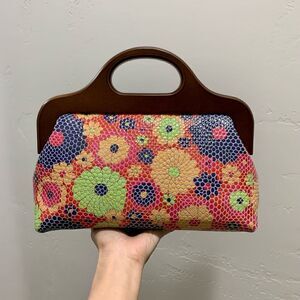 Handmade Large Genuine Cowhide Embossed Patent Wood Frame Bag & 2 Strap Styles