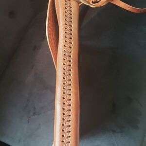 This gorgeous handmade leather laptop bag was created in Tulum Mexico in an small village. One of a kind. Every stitch is unique. Beautiful cognac color. Adjustable shoulder strap and buckle closure. Will hold a chromebook.