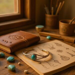Handmade Navajo Native American Turquoise & Sterling Silver Cuff Adjustable Bracelet by Esther White