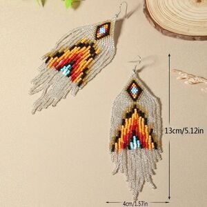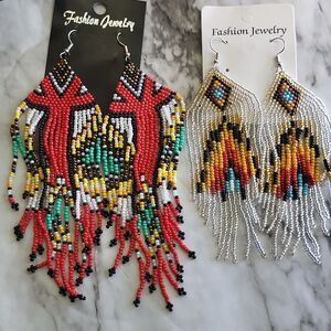 Handmade Native American-Style Beaded Tassel Fashion* Earrings Extra Long 1 pair