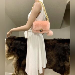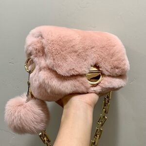 Handmade Real Rex Rabbit Fur Shoulder Bag/Crossbody & Fox Fur Ball Keychain