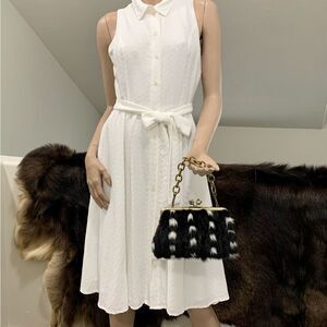 genuine mink fur. Very cute "cat paw" kisslock with metal frame. Spacious enough inside for your phone, wallet, keys, sunglasses, cosmetics, credit cards & other items. With 2 style chains and 2 removable spring gate, use in multiple ways, can be used as a wristlet, cross body, shoulder bag or clutch. Also can match different outfits.