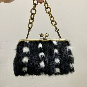 Handmade Real Mink Fur Cute "Cat Paw" Kisslock Wristlet/Shoulder Bag/Crossbody