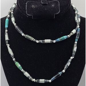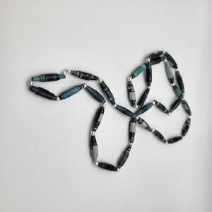 Handmade Recycled Paper Bead Necklace – Ten Thousand Villages 60in | Materials: recycled paper | Length: 60in | Clasp: slide on | Signed? no | Excellent vintage condition