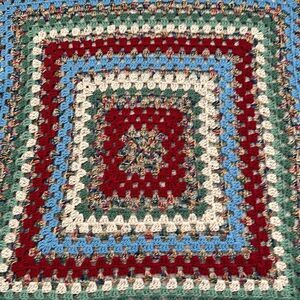 Handmade Retro Knit Square Afghan Blanket 50”x50”