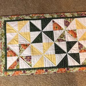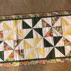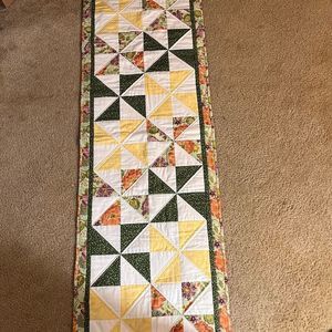 Handmade Valance Quilt pieced ,inside plain white Front is Multi colored triangl