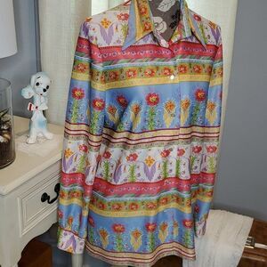 Handmade Vintage Floral BoHo Neon Floral Blouse