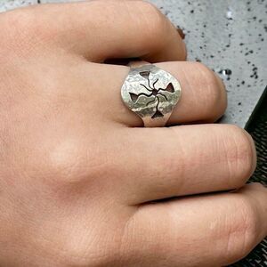 Handmade Womens Sterling Silver .925 Abstract Geometric Hammered Ring Sz 8