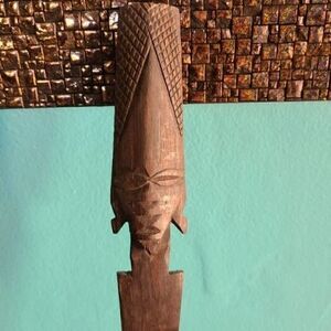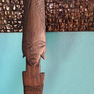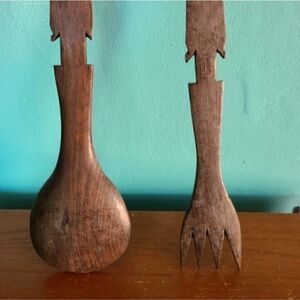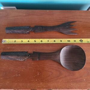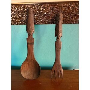 Handmade | Wooden Figural | Serving Spoon & Fork | Good Condition | Tribal Figures | 12" Long