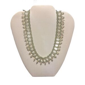 This elegant handmade green and gold necklace adds a touch of sophistication to any outfit. Perfect for any occasion.