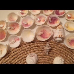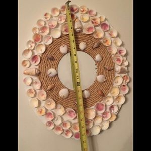 I made this round mirror on oval canvas with seashells, pearl and rope.