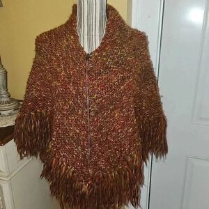 Handmade knitted rust and brown poncho women Small/Medium