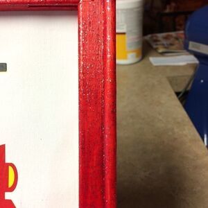Handmade item. Perfect for yourself, nursery, playroom, child’s room. Measures 10 x 10. Wood frame hand painted with red glitter paint. Stand not included