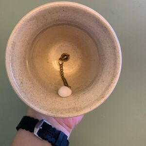 Handmade pottery bell with blue apple design and wood handle. Nice, clear sound. Adorable 8 inch bell. From a pet and smoke free house. Happy to bundle!