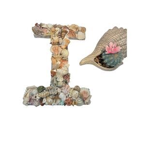 Handmade seashell letter I with seashell planter