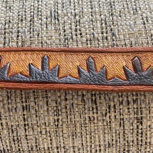 Looks to be new. Made in Mexico. The size is medium and measures 44” x 1.25”. This is just a great looking design.