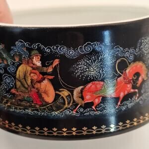 Add a touch of vintage charm to your decor with this enchanting 1990 Russian Folk Art Soviet Porcelain Trinket Box. Inspired by Russian Folklore and fairy tales, this intricately designed piece is sure to captivate your imagination. A unique and collectible item that makes a perfect gift for any folklore enthusiast.
