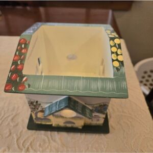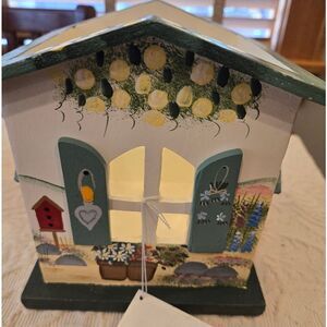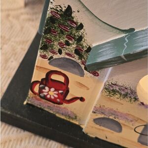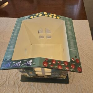 Charming handpainted wooden candle box from the Kathy Hatch Collection. Features a delightful house design with floral accents. Perfect for adding a cozy touch to any room. For use with Yankee Candle jar or similar kind. NWT