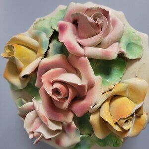 Handpainted Ceramic Capodiamante Floral Trinket Box With Raised Rose Design Made