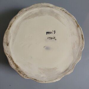 This ceramic trinket box features delicate handpainted floral patterns and raised roses on the lid. A decorative and functional piece for organizing small keepsakes. • Handpainted with vibrant floral details • Raised rose design on the lid for added texture • Made in Italy with unique craftsmanship • Approx. 3.5 inches tall, 4.5 inches diameter • Durable ceramic material Small chips on some rose petals; Some discoloration. Measurements: Height = 3.5 inches, Diameter = 4.5 inches.