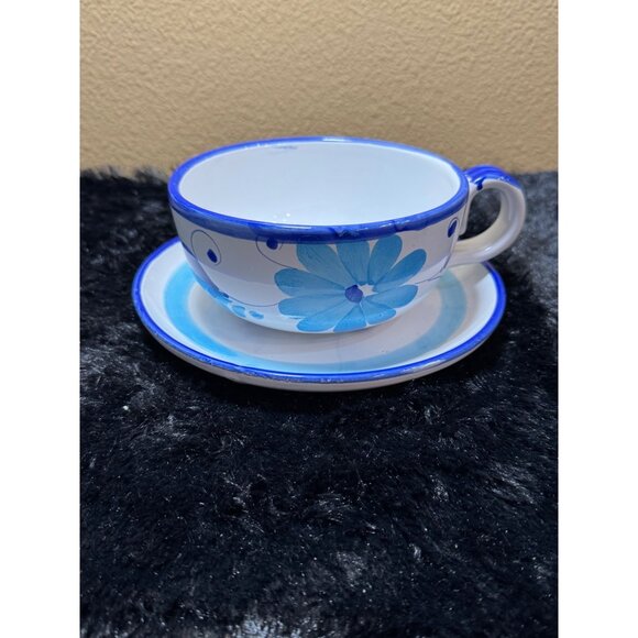 Handpainted Ceramic Large Cup Saucer Cappuccino Latte Soup Italy Italy
