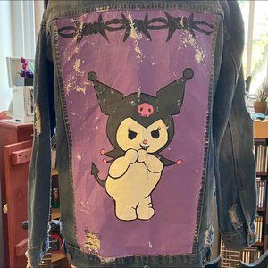 Handpainted Kuromi Distressed Denim Jacket. Size S, but oversized.