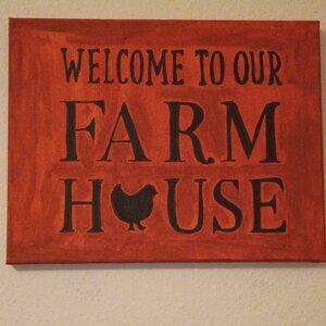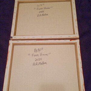 Handpainted Set of 2 'Farm House' Wall Decor Acrylic Painting 11x14" Signed