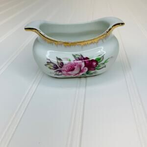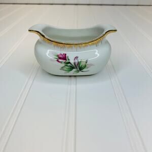 Handpainted Small Vase 4 x 3 x 2.5" Rose Gold Edges Handles