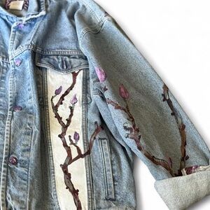 One of a kind spring time denim jacket with hand-painted details #cherryblossom #denimjacket #oneofakind