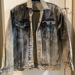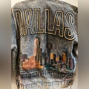 Handpainted Vintage 1980s Denim Jacket DALLAS Unisex Size S/M
