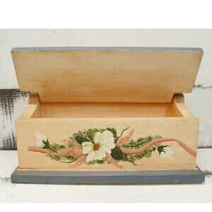 Handpainted Wooden Box with Hinged Lid Floral