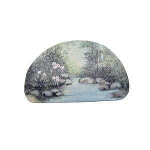 This hand-painted wooden brooch showcases a stunning nature scene, signed by artist Webb. A wonderful fusion of artistry and craftsmanship, it's the perfect accessory for any outfit.