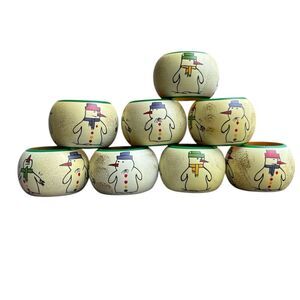 Set of eight hand painted wooden snowman holiday Christmas Winter napkin rings