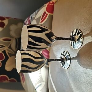 Add a touch of elegance to your home with this zebra print wine glass set. Since they are handpainted, I have used them for display in my dining room as decor in a beautiful curio cabinet.