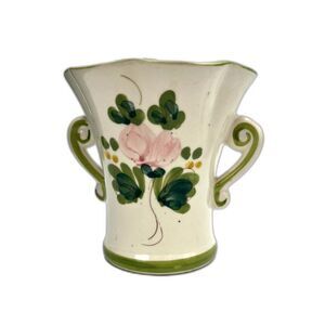 Handpainted in Portugal Vase in Pink, Green, Cream Two Handles Gorgeous!
