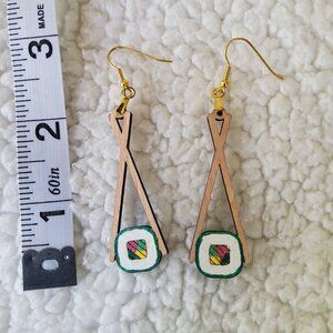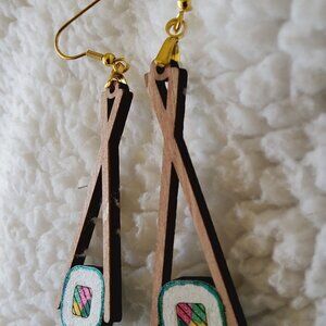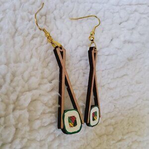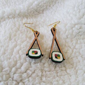 Hand-painted laser-cut wood Sushi Chop Sticks Earrings