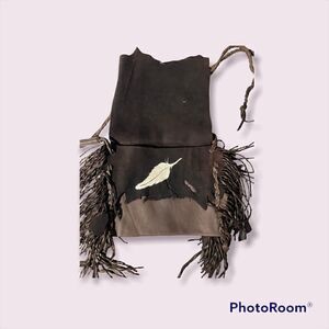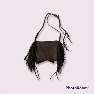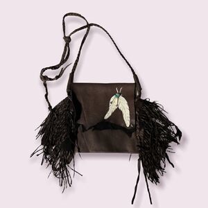 Handpainted Leather Pouch Fringe Boho Crossbody Bag