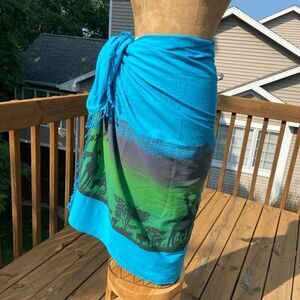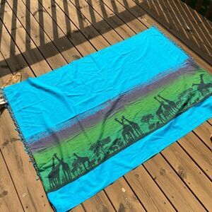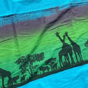 Hand-printed Bright Blue Natural Fiber Surrong Gradient Sky African Animal Silhouettes - 58" x 40"