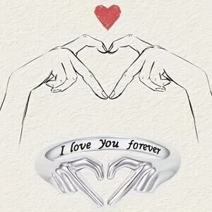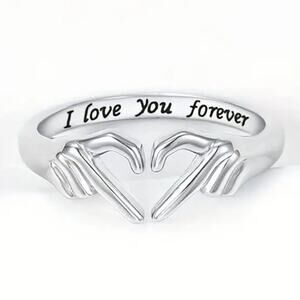 925 Sterling Silver Plated Stainless Hands Heart Silver Ring Adjustable Hands Christmas Valentine's Birthday Gift NEW!!