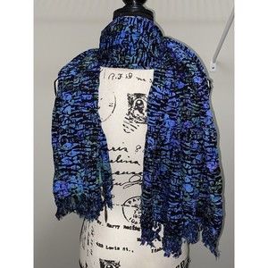 One Hand to hearts Womens fish blue black lavender one size fringed scarves. NWTS