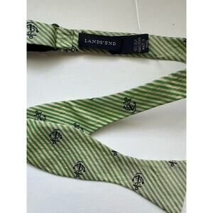 Handsewn Land's End Striped Green Adjustable Silk Bow Tie with Navy Anchors