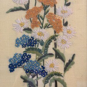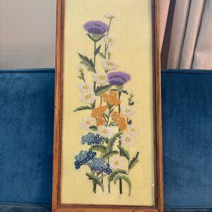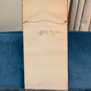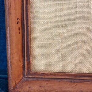 A beautiful and quality piece, the workmanship is spot on! Framed with a rustic style frame and designed to hang vertically, this piece measures 25" tall and 11" wide. It is clean and in excellent condition.
