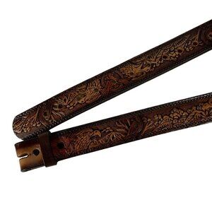 Handtooled Leather Western Belt Size 48 Brown Embossed Eagles Cowboy Rodeo