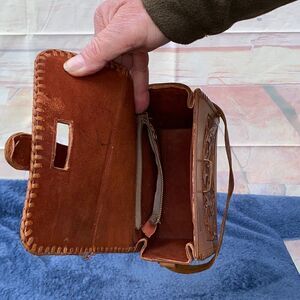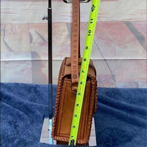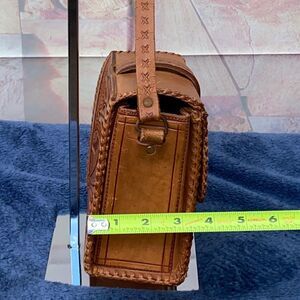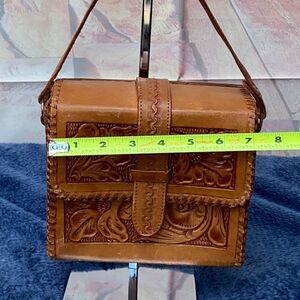Very nice in good condition used hand-tooled leather box shoulder purse