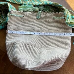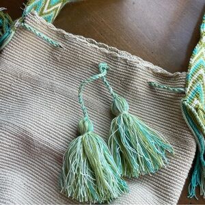 Handwoven Beige Cream and Green Wayuu Large Traditional Columbian Bag