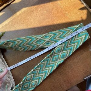 Elevate your style with a Handwoven Mochila Wayuu Bag, a stunning piece of traditional craftsmanship created by the skilled artisans of the Wayuu tribe in Colombia. This elegant handwoven tote bag features a beautiful cream base with vibrant green accents. Versatile design that is great for everyday use, festivals, or as a travel bag. Eco-friendly and supports fair trade craftsmanship. Gently preowned in great condition. PLEASE NOTE: the final photo is for style and scale and is NOT the actual item.