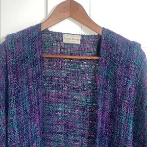 Handwoven Cardigan Sweater Jane Frenke's Loom Room Purple and Blue Weaver