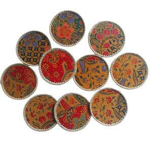Handwoven Fabric Batik & Bamboo Coasters Set of 12 Vibrant Patterns Unique