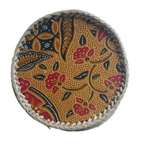 This set of artisan coasters combines natural woven textures with vibrant batik patterns, offering a unique blend of rustic charm and cultural artistry.