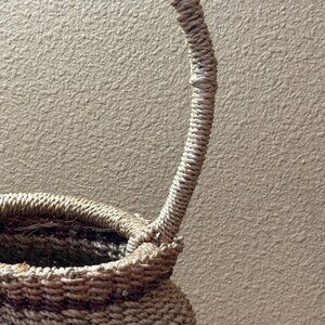 This handwoven natural fiber basket offers an earthy aesthetic, crafted meticulously with a sturdy handle.
